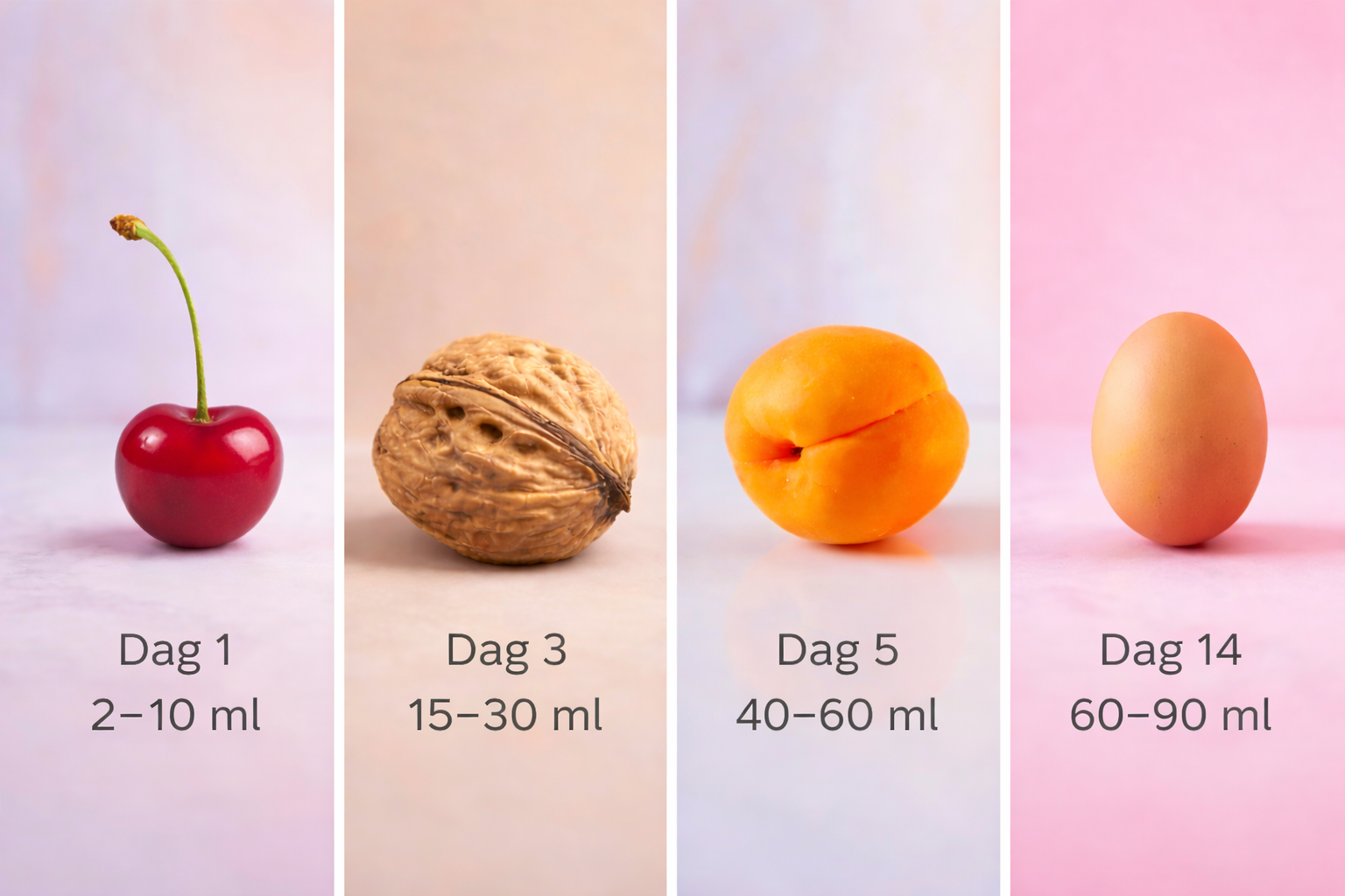 En nyfødts mave vokser hurtigt – mælkemængderne gør det samme